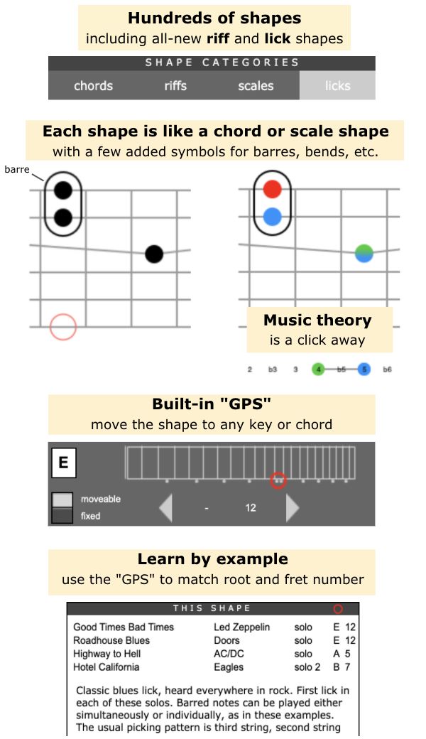 of riffs, licks, and chord shapes for guitar